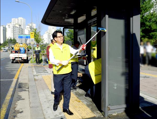 파주시는 다가오는 추석을 맞이해 대중교통 이용시민과 고향을 찾는 귀성객들에게 깨끗하고 쾌적한 대중교통 이용환경을 제공하기 위해 지난 8월 30일 운정1·2·3동 버스정류장 대청소를 실시했다.