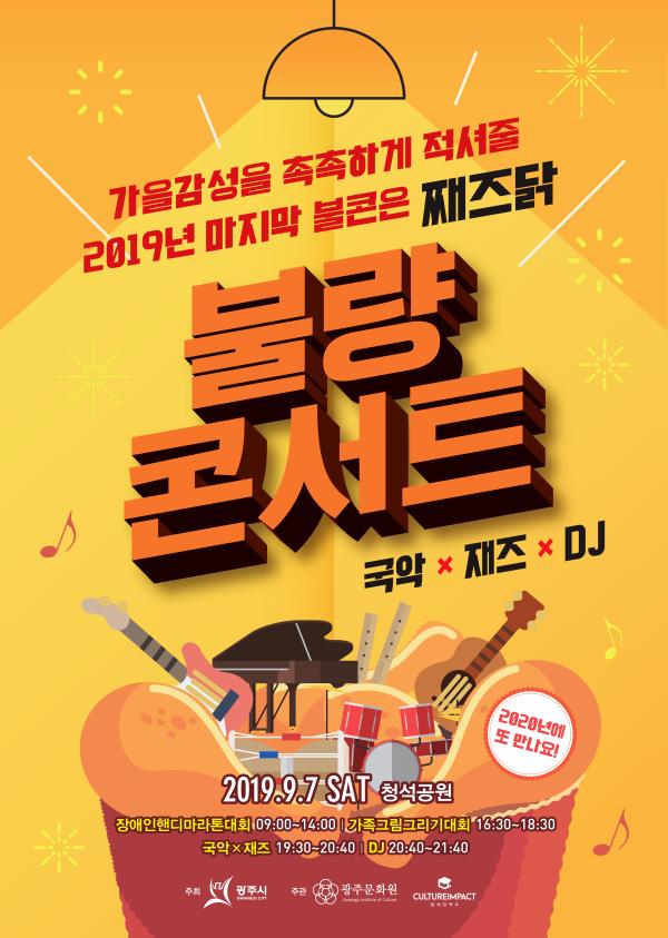 광주시는 오는 7일 청석공원에서 ‘불량콘서트-마지막 불콘은 째즈닭’을 개최한다.