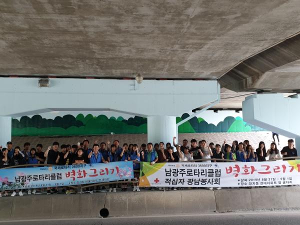 광남적십자봉사회와 남광주로타리는 지난달 30일부터 1일까지 광남동 현대아파트 부근 지하차도에 벽화그리기 봉사활동을 펼쳤다.