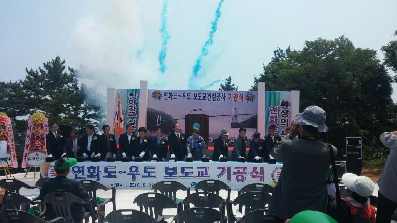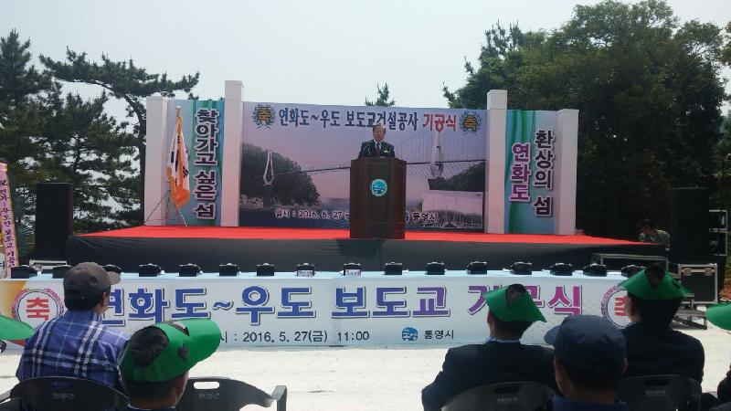 [미디어타임즈 = 최귀복 기자] 통영시(시장 김동진)는 27일, 섬과 섬을 잇는 국내 최장의 해상 현수교 형식의 보도교 기공식을 욕지면 연화도에서 150여명 지역 주민들과 함께 가졌다.