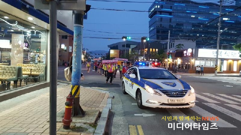 | 지난 25일, 옥포1동 주민자치위원회, 거제경찰서 옥포지구대,옥포1동 자율방범대, 옥포새마을금고 30여 명은 옥포1동 관내에서 청소년 선도 캠페인을 펼치고 있다. |