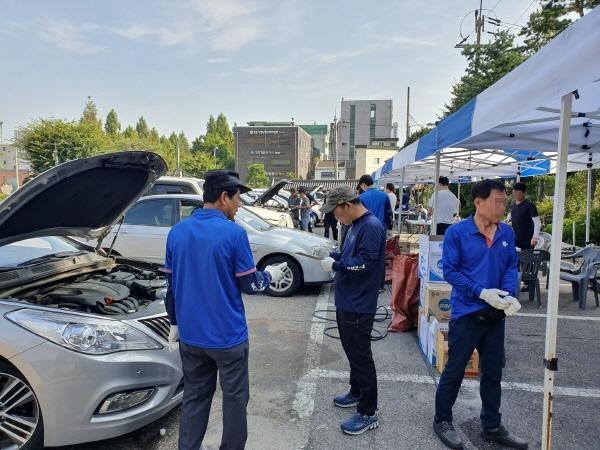 경기도자동차전문정비사업조합 김포시지회는 추석을 맞아 지난 1일 김포시청에서 차량의 장거리 운행을 앞두고 시민들 차량에 대한 무상점검을 실시했다.