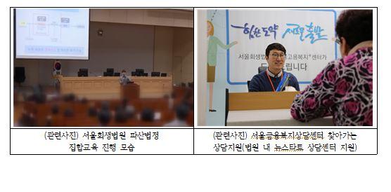 한편, 서울회생법원은 서울금융복지상담센터 경유 개인파산면책 사건을 전담하는 전담재판부를 지정, 사건의 신속진행을 통해 과중채무자의 조속한 사회복귀를 돕는 한편, 양 기관 소속구성원들의 상호이해증진을 위한 직원교육 실시 등의 상호교류를 강화하기로 했다.