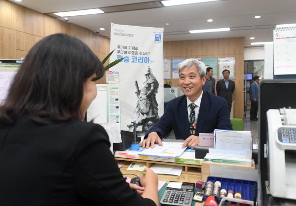 곽상욱 오산시장은 2일 NH농협은행 오산시청점을 방문해 ‘애국펀드’로 알려진 ‘NH아문디 필승코리아 주식형 펀드’ 상품에 가입했다.