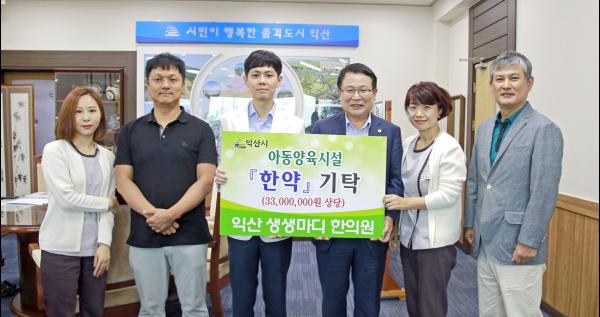 익산시는 2일 생생마디한의원이 익산시를 방문해 아동양육시설 아동 60명에게 1년간 3천3백만원 상당의 한약을 후원하기로 했다고 밝혔다.