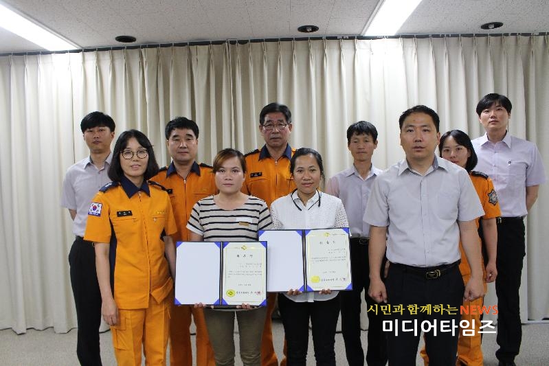 [미디어타임즈=김희철 기자] 경주소방서(서장 류수열)는 30일 11시 본서 회의실에서 “소방안전도우미”를 위촉하였다.“소방안전도우미” 위촉은 봄철 화재예방대책 특수시책으로 언어 및 생활환경 등으로 의사소통이 어려워 안전사각지대에 놓인 결혼이주여성, 외국인 근로자 등에 양질의 119서비스를 제공하고 향후 외국인 대상으로 소방안전교육 시 통역 및 실습교관으로 활용하여 지역안전지킴이로서 역할을 수행하고자 추진되었다.이날 소방안전도우미로 다문화가족지원센터 관리회원 중 한국어 능력이 뛰어나고 매사 적극적이고 타의 모범이 되는 이예승(베트남), 폰네리(캄보디아) 씨를 위촉하였다.소방서 관계자는 “이번 소방안전도우미 위촉으로 외국인도 양질의 119서비스를 제공받아 안전문화가 정착되는데 큰 도움을 될 것으로 기대된다”고 전했다.