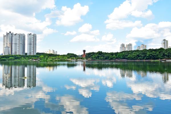 수원 광교호수공원의 원천저수지, 신대저수지는 흐르는 물이 아니지만 한여름에도 녹조가 없다. 계속해서 물이 순환하기 때문이다.