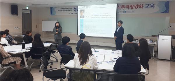 송미정 대표이사는 ‘2019 수원 청년 [내:일]로 사업’ 참여자 38명을 대상으로 진행된 이번 교육에서 지역공동체 의식 향상 조직 내 갈등관리 효과적 의사소통 자기개발 계획 수립·실행 방법 등을 설명했다.