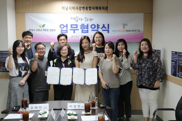 하남시미사강변종합사회복지관과 하남시 초중고학부모연합회는 학부모와 학생들이 주축이 된 하남형 기부문화 조성 및 확산과 초중고 학생들의 가치관 정립 및 건강한 신체·정서발달 증진을 도모하고자 협약을 체결했다.