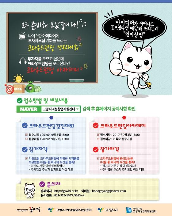 고양시와 고양시여성창업지원센터는 이달 3일부터 오는 23일까지 경기도 거주 여성들의 우수한 시제품 발굴을 위한 ‘2019 고양시 꿈마루 크라우드펀딩 경진대회’ 참가자를 모집한다.