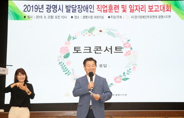 광명시는 지난 2일 시청 대회의실에서 발달장애인 및 부모와 관계자 100여명이 참석한 가운데 ‘발달장애인 일자리 보고대회’를 가졌다.
