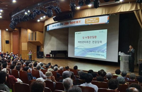 남양주시보건소는 질병관리본부가 주관하는 심뇌혈관질환 예방관리 홍보주간을 맞이하여 3일 시청 다산홀에서 남양주시 고혈압당뇨병등록교육센터 등록환자 400여명을 대상으로 ‘증상 없다 방심말자 고혈압, 제대로 알기’라는 주제로 건강강좌를 개최했다.