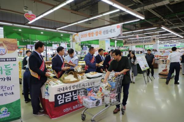 이천시는 농촌진흥청과 공동으로 3일 농협하나로클럽 양재점에서 일본산 대체품종 임금님표 이천쌀 ‘해들’출시행사를 가졌다.