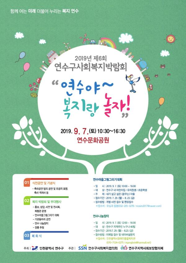 연수구은 오는 7일 오전 11시부터 오후 4시까지 연수문화 공원 일원에서 제6회 연수구 사회복지박람회 ‘연수야~복지랑 놀자’를 개최한다.