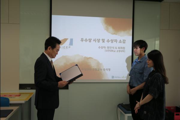 우수상은 국민대학교 조형대학의 원민석 및 최희원 학생으로 구성된 팀이 선정됐다. 이들은 Goyang International miCE Park라는 영문 네이밍과 함께 고양국제회의복합지구가 센터의 한계를 벗어나 하나의 테마단지로 뻗어 나가길 기대하는 의미를 담아 심사위원들로부터 좋은 평가를 받았다.