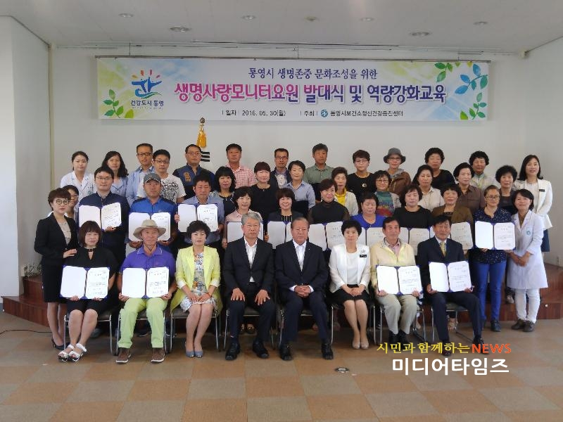 [미디어타임즈 = 최귀복 기자] 통영시(시장 김동진)는 자살문제에 선제적으로 대응하기 위해 올 초 자살예방상담센터를 설치하고 지역사회 최일선 정신건강 문지기 역할을 담당할 「생명사랑 모니터요원」에 대한 위촉장 수여와 발대식을 지난 30일 보건소 대강당에서 가졌다.