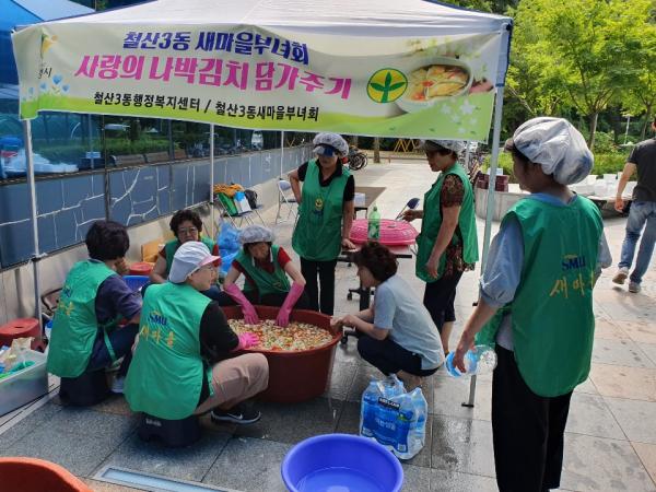 철산3동 행정복지센터는 지난 3일 행정복지센터 앞에서 어려운 이웃들에게 전달할 나박김치 담그기 행사를 가졌다.