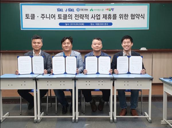 지난 3일 주니어토클 접수처인 에듀팡은 토클, 국풍2000, 아이엠스쿨과 토클·주니어토클 제휴사업협력을 위한 MOU를 체결했다.