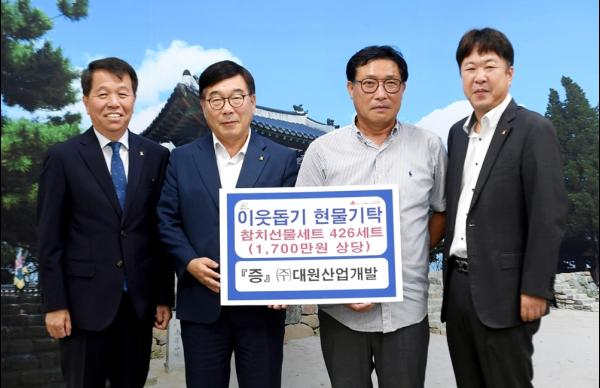 ㈜대원산업개발 이근배 대표는 4일 광주시를 방문, 어려운 이웃에게 전달해 달라며 참치선물세트 426세트를 기탁했다.