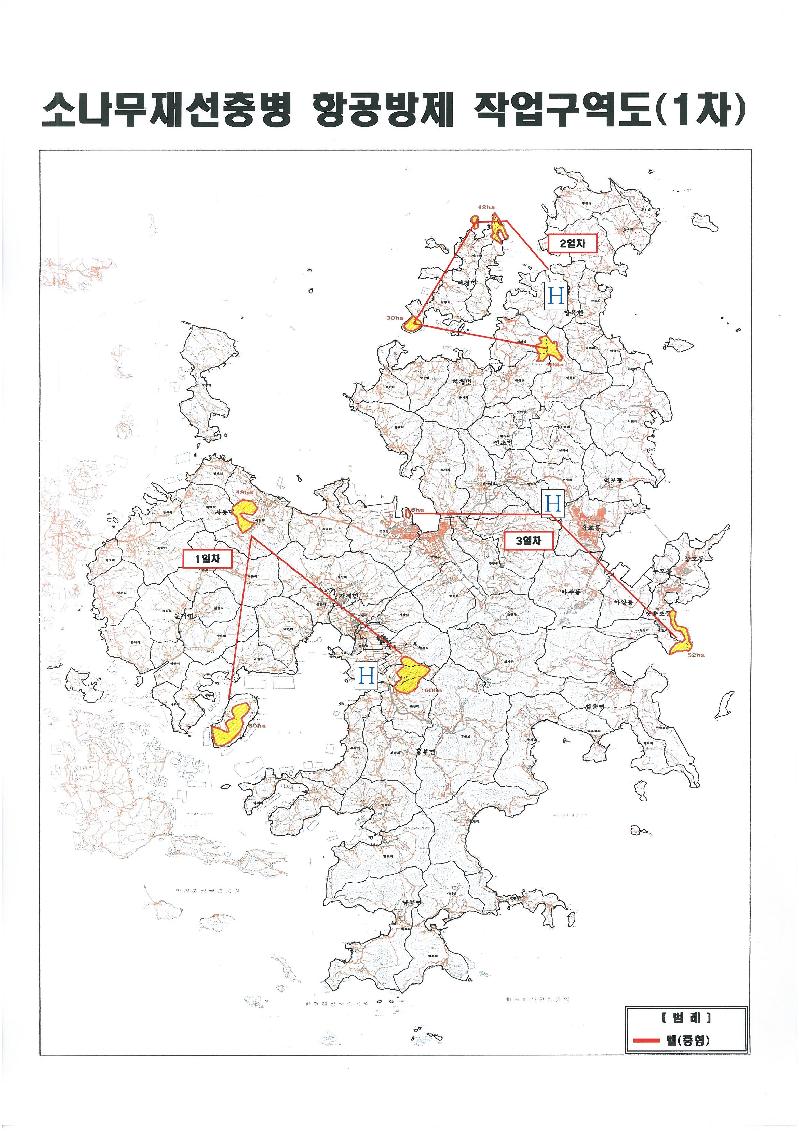 항공방제 세부일정은 1차 6월 1일 ~ 3일, 2차 6월 15일 ~ 17일, 3차 6월 29일 ~ 7월 1일로 예정 되어 있다.