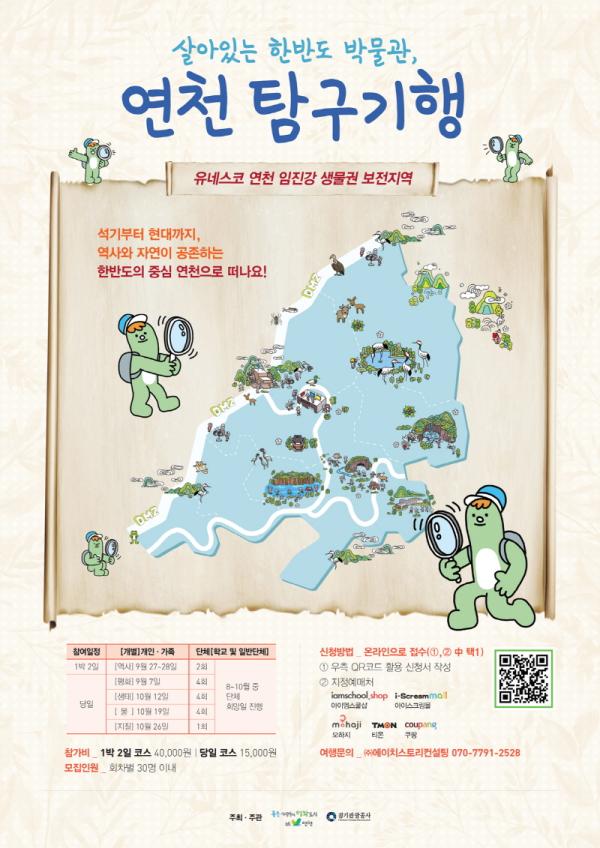 연천 탐구기행은 유네스코가 선정한 경기 유일의 생물권 보전지역 연천을 구석구석 다니며 자연과 역사를 체험할 수 있는 프로그램이다. 살아있는 한반도 박물관이란 주제로 평화와 역사, 생태, 물, 지질 총 5가지 테마별 일정이 준비되어있다.