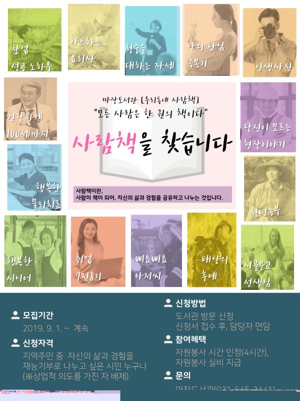 2020년부터는 지역주민들의 자원봉사참여로 운영된다. 자신의 삶의 경험과 지혜를 나누고 싶은 시민은 누구나 사람책 신청이 가능하며, 사람책으로 활동하게 되면 자원봉사시간과 자원봉사실비를 지급받는 혜택이 있다.