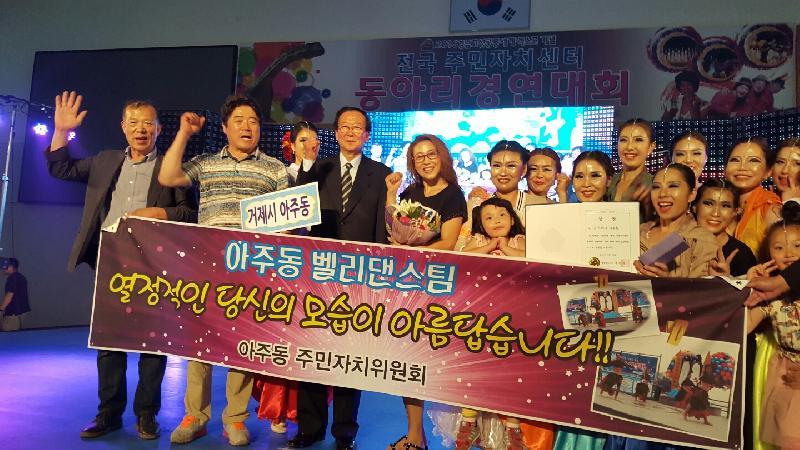 밸리댄스팀을 지도한 김경숙 강사는 “아주동 밸리댄스팀은 육아로 인해 제한된 시간과 길지 않은 준비 기간임에도 불구하고 꾸준히 연습한 결과, 대상이라는 성과를 거뒀다.”며 “앞으로도 수강생들이 만족할 수 있는 강의와 다양한 무대를 통해 성취감을 느낄 수 있도록 노력할 것”이라며 소감을 전했다.