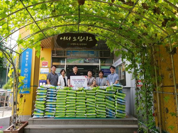 의정부명물부대찌개는 지난 3일 의정부1동 주민센터를 방문해 추석을 맞아 소외계층에 전해달라며 쌀 100포를 기탁했다.