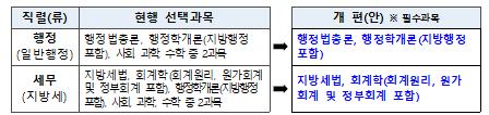 지난 2013년 선택과목으로 고교과목이 도입되었으나, 신규공무원의 직무 전문성이 떨어진다는 우려가 지속 제기되어, 수험생, 합격자, 지방자치단체 등의 의견수렴을 바탕으로 선택과목을 전문과목으로 필수화하는 개편안을 마련했다.