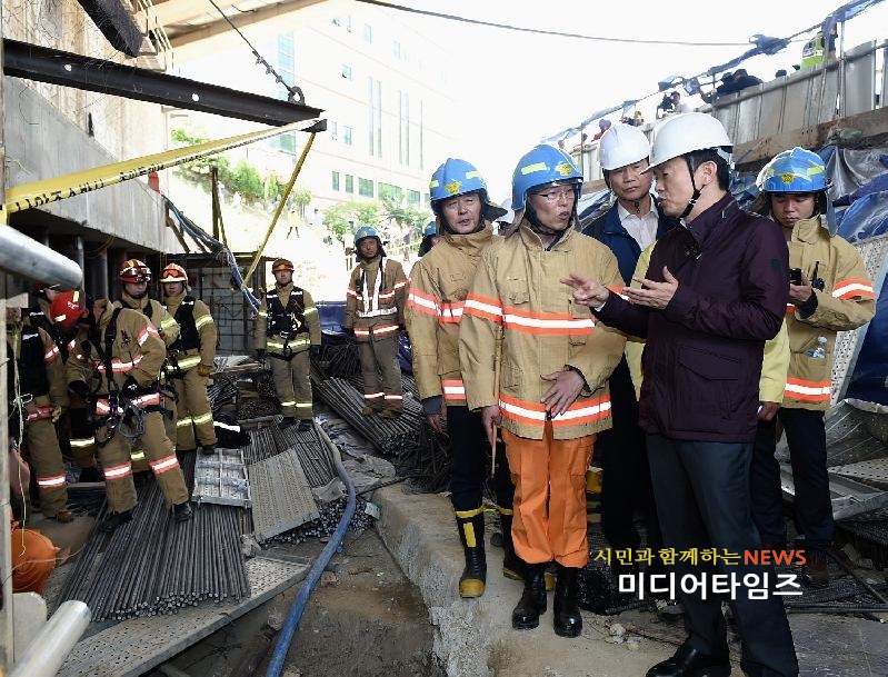| 남경필 경기도지사가 1일 아침 발생한 남양주시 지하철 폭발사고 현장을 찾아 정확한 사고원인을 파악하고 있다. |