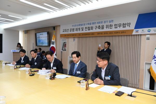 지난 3일 이재명 경기도지사와 이재준 고양시장, 안병용 의정부시장, 김대순 양주시 부시장은 교외선 운행 재개와 전철화 구축을 위한 업무협약을 체결하고 내달 중 국토부 등 관계기관에 공동 건의문을 제출하기로 했다.