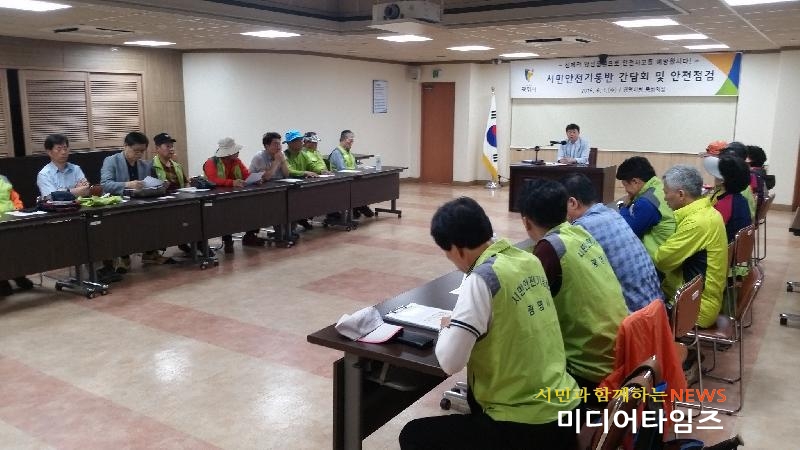 | 1일 시민안전기동반이 민.관 합동으로 안전점검을 마치고 간담회에서 의견을 나누고 있다. |