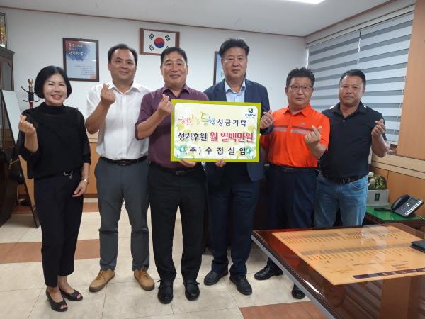 ㈜수정실업 이정수 대표는 추석 명절을 맞아 호법면에 사시는 어려운 이웃들이 조금이나마 따스함을 느낄 수 있으시길 바라며, 여유가 생기면 많은 금액을 기부를 해야겠다는 생각보다 매월 정기 기부를 하여 장기적으로 계획을 세워 도움이 필요한 곳에 지원을 할 수 있는 초석이 되었으면 좋겠다고 뜻을 전달했다.