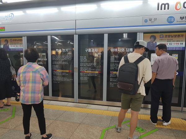 인천광역시북부교육지원청에서는 지난 1일부터 오는 30일까지 부평구청역 스크린도어를 통해 흡연예방 학생작품 공모전 입상작을 전시하고 있다고 밝혔다.