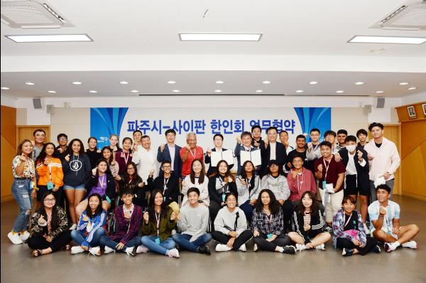 파주시는 지난 4일 시청 대회의실에서 최종환 파주시장과 사이판 한인회 장능식 회장, 임원 및 원주민 학생 등 45명이 참석한 가운데 우호교류 협력을 위한 협약을 체결했다.