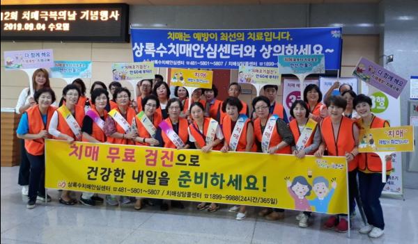 행사장 밖에는 상록수·단원보건소 치매파트너 50여명이 치매 예방의 중요성을 알리는 어깨띠를 메고, 손가락안마기와 팔토시 등을 나눠주며 캠페인을 전개했다.