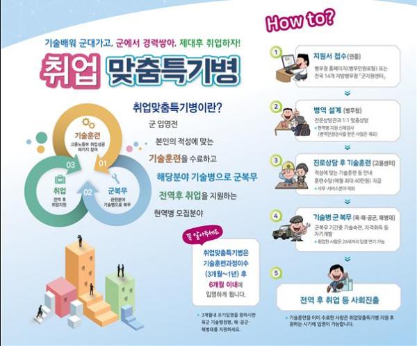 취업맞춤특기병이란, 자격이나 전공이 없는 취업에 취약한 청년들을 대상으로 입영 전 기술훈련을 통해 기술병 지원입영의 기회를 제공하고 관련분야 군 복무로 경력을 숙련, 전역 후 취업 등 원활한 사회 진출을 돕는 현역병 모집제도이다.