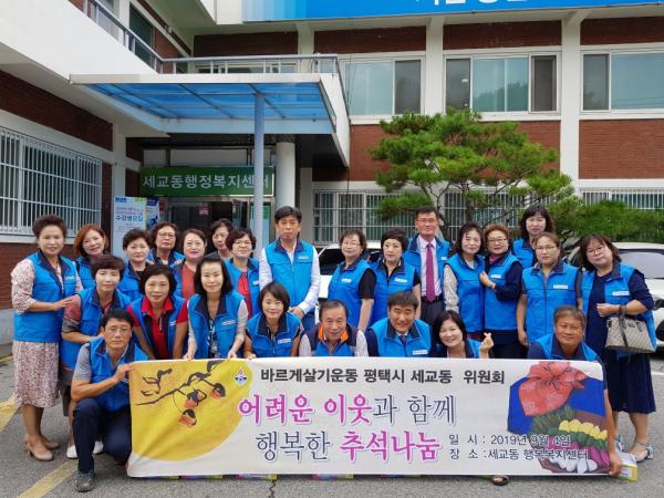 평택시 바르게살기 세교동위원회는 지난 4일 다가오는 추석 명절을 맞이하여, 어려운 이웃 20가구에 사랑의 위문품을 전달했다.