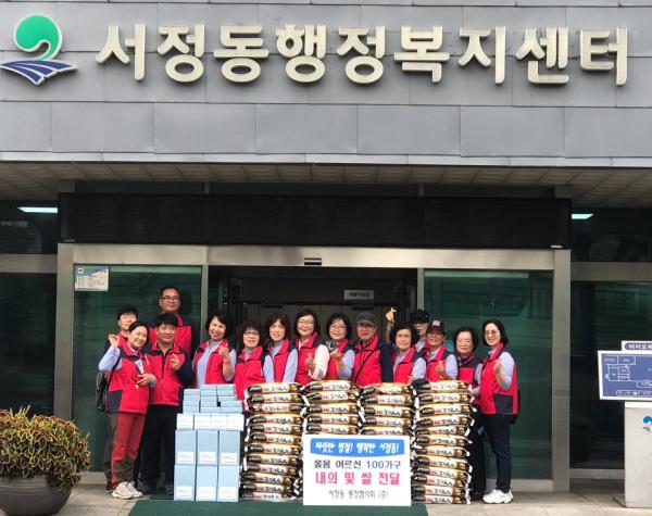 한편, 서정동 통장협의회는 평소에도 복지 사각지대의 위기가구를 발굴, 지원하기 위해 노력하고 있으며, 매년 명절과 연말연시에는 취약계층을 위해 사랑의 나눔을 지속적으로 실천하고 있다.
