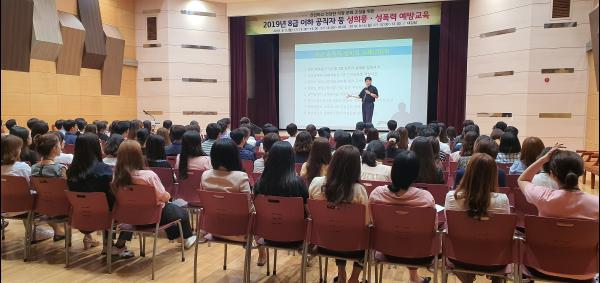 의정부시는 지난 2일 2회에 걸쳐 의정부시청 대강당에서 8.9급 공직자 500여명이 참석한 가운데 ‘2019년 8.9급 공직자 성희롱.성폭력 예방교육’을 실시했다고 밝혔다.