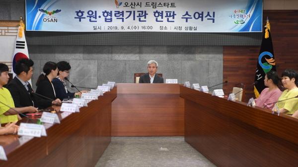 오산시는 지난 4일 시청 상황실에서 드림스타트 후원·협력기관 22개소에 현판을 수여했다고 밝혔다.