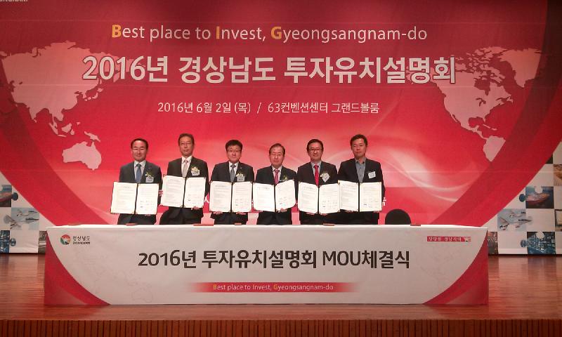 거제시(시장 권민호)는 거제해양플랜트 국가산단 집단에너지공급시설 내 친환경 신․재생에너지 시설인 ‘연료전지 발전시설’ 도입 본격 추진을 위하여 지난 2일, 63컨벤션센터에서 개최된 「2016년 경상남도 투자유치설명회」에서 경상남도, SK건설(주), ㈜두산 퓨얼셀, 후지전기코리아(주), 부산강서산업단지(주) 관계자 등이 참석한 가운데 공동사업개발 협약식을 체결하였다.