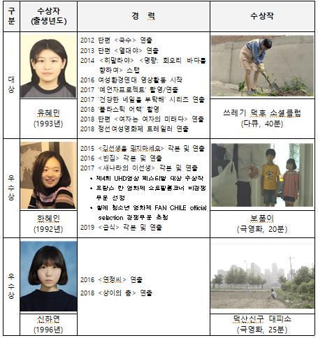 이밖에도 우수상을 수상한 한혜인 감독의 '보폼이', 신하연 감독의 '덕산신구대피소'도 환경과 인간에 대한 다양한 접근을 보여줬다는 평을 받았다.