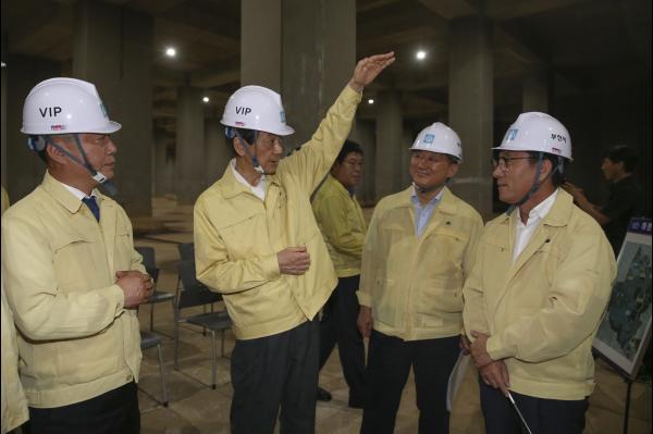 이날 점검현장에는 진영 행정안전부 장관, 장덕천 부천시장, 김희겸 경기도 행정1부지사 등이 참석했으며 양진철 부천시 부시장이 우수저류시설의 현황, 처리 원리, 시설 효과 등을 브리핑한 후 관리 실태를 점검했다.
