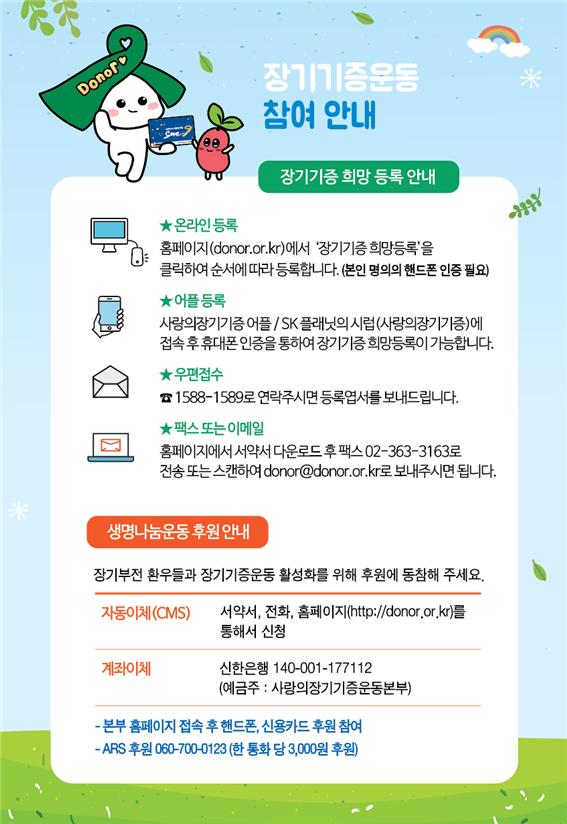 나백주 서울시 시민건강국장은 “서울시 장기기증의 날 제정 이후 6년간 시민 참여 확산으로 6년간 장기기증 희망 등록률 전국 1위를 기록했다.”며 “이번 행사를 통해 더 많은 시민이 동참해 장기기증에 대한 긍정적인 인식을 활성화하고 생명나눔 문화를 확산하는 계기가 되길 기대한다.”고 말했다.