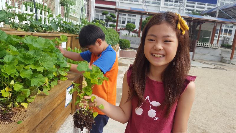 열무와 아욱의 첫 수확에 참여한 3학년 김은채 학생은 “식탁에서 보던 열무를 직접 키우고 하루가 다르게 열무가 자라는 모습을 보니 신기하다. 직접 수확하니 재미있고 기쁘다. 앞으로 식사를 할 때 감사하는 마음이 들 것 같다.”며 소감을 밝혔다.