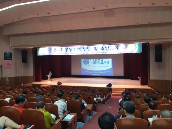 부천시는 지난 4일 부천시청 어울마당에서 공동주택 시설물 안전관리 책임자 및 경비책임자 300명을 대상으로 공동주택 안전관리를 위한 ‘2019 공동주택 방범 및 소방 교육’을 실시했다.