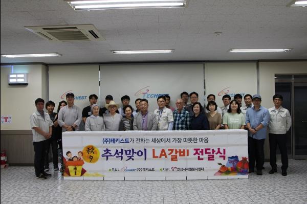 ㈜테키스트는 추석명절을 맞이하여 나눔 문화 확산에 동참하기 위해 1500만원 상당의 LA갈비세트를 기부하였으며, 관내 열악한 사회복지시설 19곳에 전달됐다.