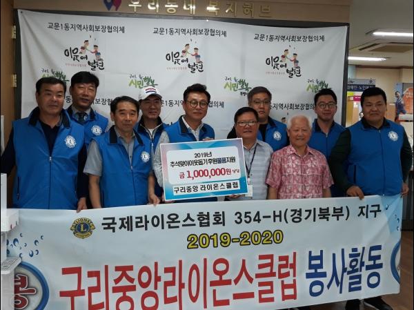 먼저 구리중앙라이온스클럽에서는 지난 9월 5일 독거노인들의 따뜻한 추석나기를 위해 사용해달라며 100만원 상당의 쌀국수를 후원했다.