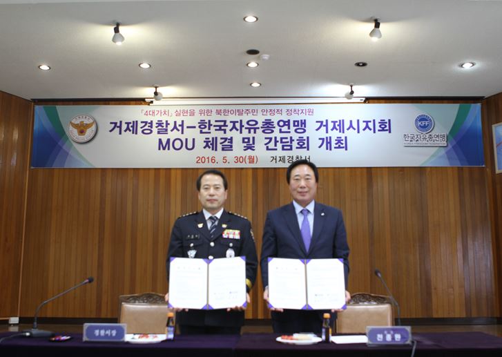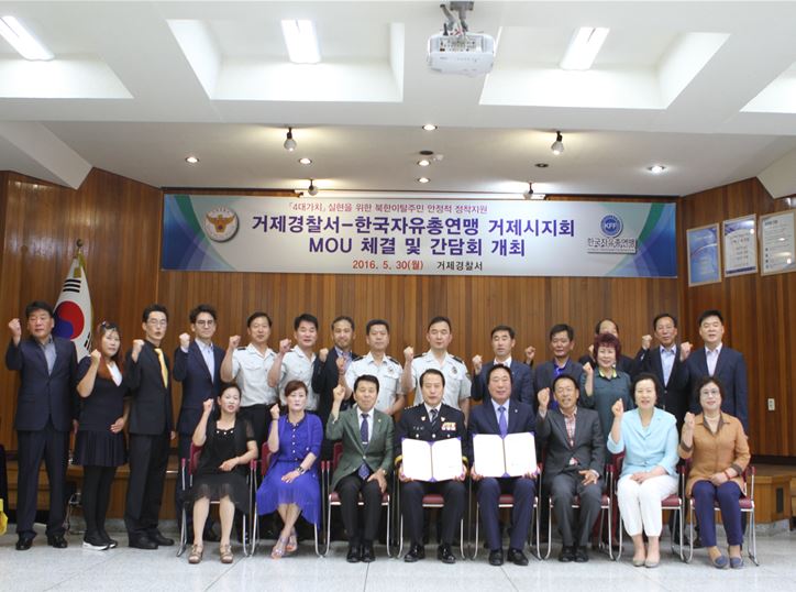 특히, 양 기관은 북한이탈주민을 4대 사회악 등 각종 범죄피해로부터 보호하고, 지역조직간 협력 체계를 구축하여 지원 사업 공동추진을 통해 각종 캠페인 및 행사에 적극 참여하고 선진 교통문화 바로세우기에 앞장서는 등 안전하고 행복한 거제시를 만들어 가는데 상호협력을 약속했다.